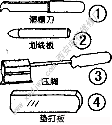 一般繞組維修常用工具有:改錐、鉗子、扳手、銅棒、撬棍、銼刀、鐵榔頭、橡皮榔頭、電烙鐵等。專用工具有鏨子、鋼沖條、清槽刀、繞線機(jī)、萬能模板、劃線板、壓腳、美工刀、理發(fā)剪、墊打板等,現(xiàn)將幾種工具的用法做簡單的介紹: