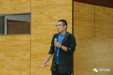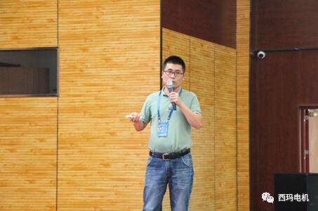 公司技術(shù)部交流產(chǎn)品室洪亞國,代表團(tuán)隊做《大型電機(jī)轉(zhuǎn)子裝配創(chuàng)新設(shè)計》的現(xiàn)場講解