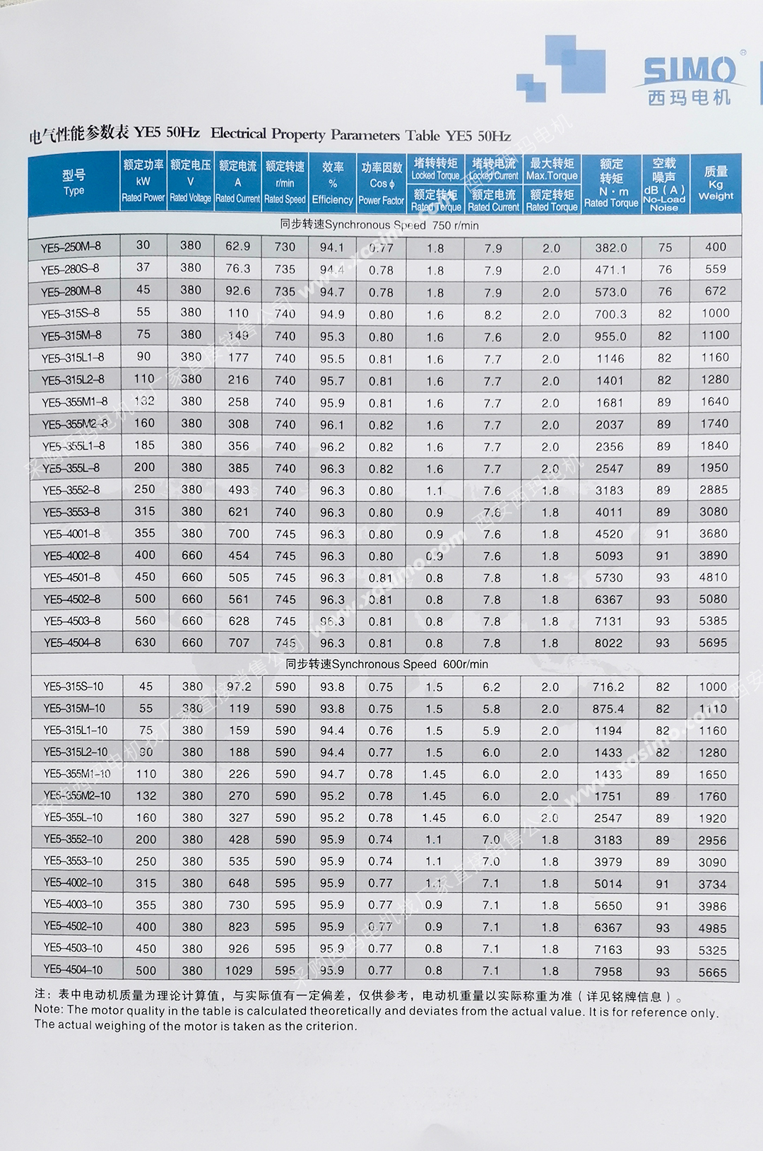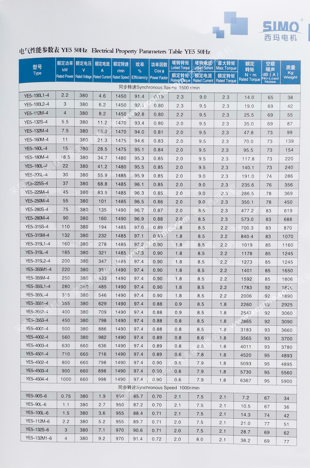 SIMO西瑪電機(jī)YE5系列超高效率三相異步電機(jī)(YE5series Ultra-high efficiency three-phase asynchronous motor)本系列電動機(jī)是我公司自主研發(fā)的超高效節(jié)能三相異步電動機(jī),冷卻方式為:IC41 GB/T755《旋轉(zhuǎn)電動機(jī)定額和性能》,效率值符合GB18613-2020中1級能效標(biāo)準(zhǔn),60034-30《單速三相籠型感應(yīng)電動機(jī)能效分級》中的IE5一致。本系列產(chǎn)品能夠完全取 YGM2、YE2、YE3、YE4系列低壓三相異步電動機(jī)。